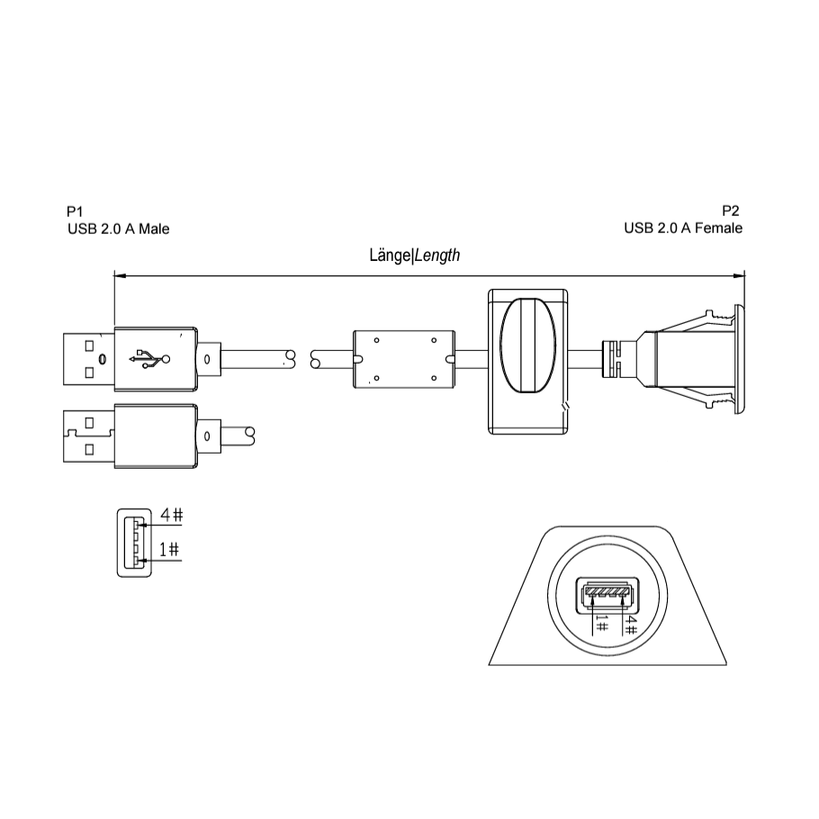 - USB 2.0 A socket (female) to USB 2.0 A plug (male)