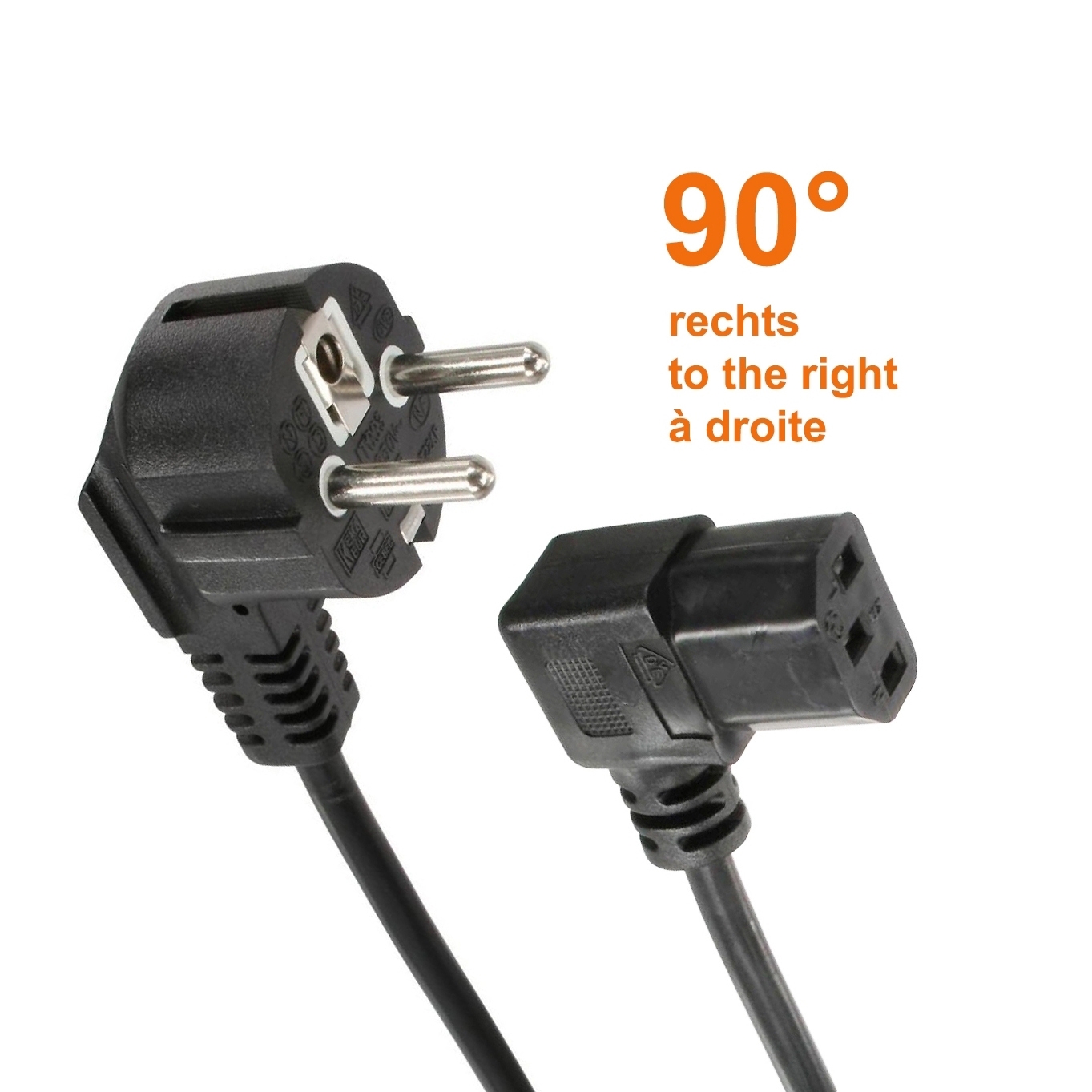 Câble d'alimentation secteur externe pour PC, 180cm, p. ex. pour France / Allemagne, prise CEE 7/7 E+F mâle (coude, 2 pôles + terre) - IEC femelle (coude, C13 type "Informatique"), 3G x 0.75mm², noir