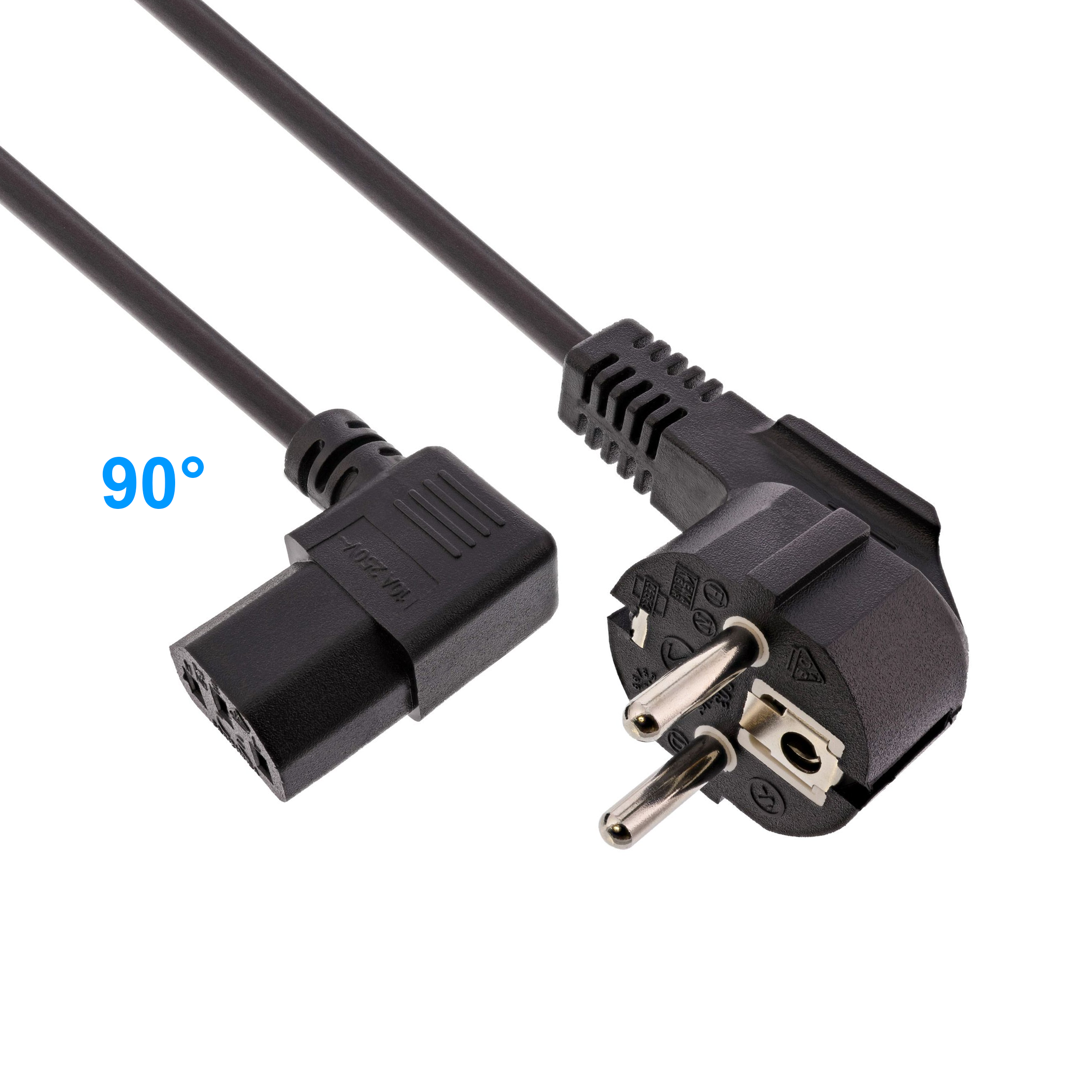 Câble d'alimentation secteur externe pour PC, 1m, p. ex. pour France / Allemagne, prise CEE 7/7 E+F mâle (coude, 2 pôles + terre) - IEC femelle (coude, C13 type "Informatique"), 3G x 0.75mm², noir