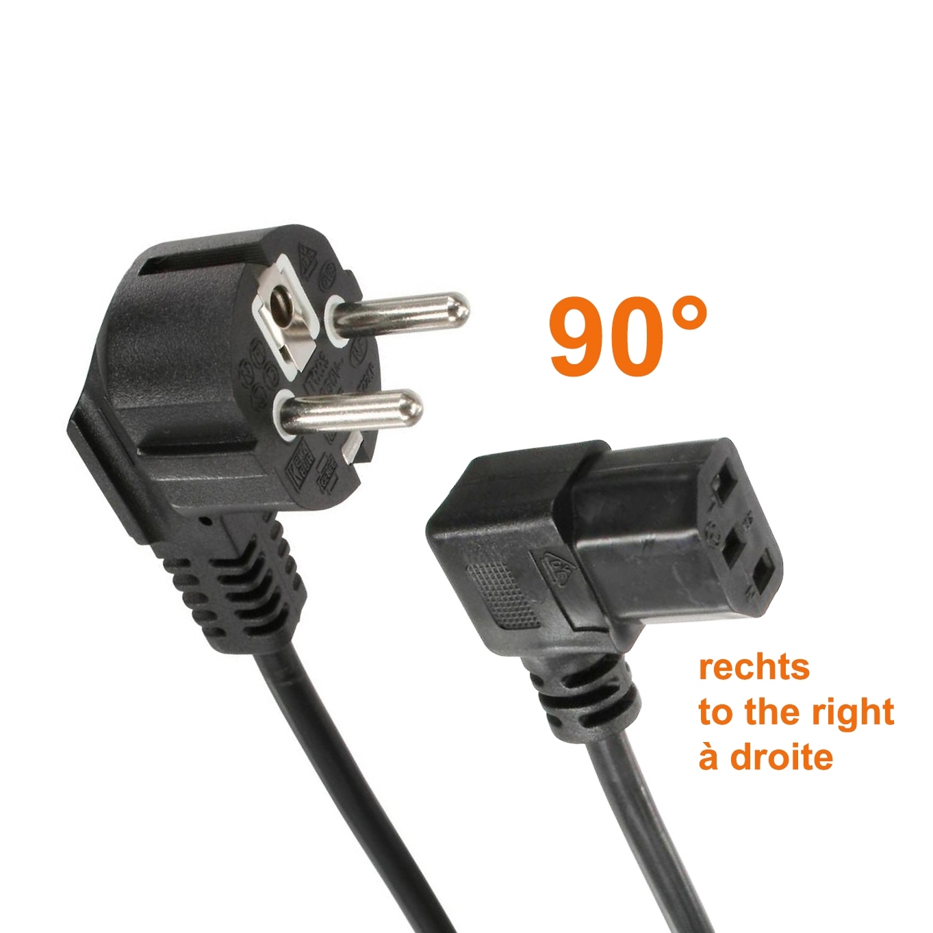 Câble d'alimentation secteur EUROPE C13 coudée À DROITE 1m