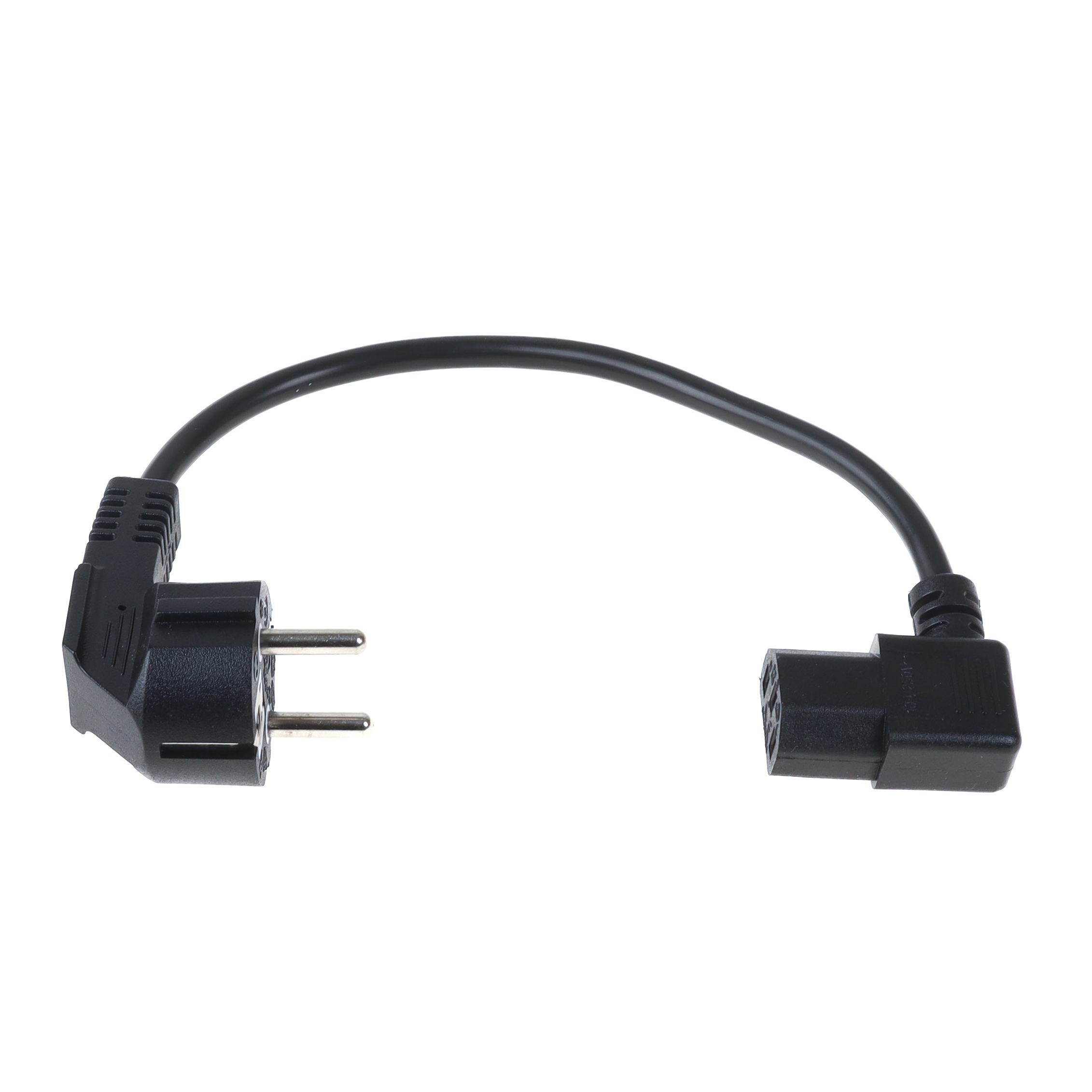 Câble d'alimentation secteur externe pour PC, 30cm, p. ex. pour France / Allemagne, prise CEE 7/7 E+F mâle (coude, 2 pôles + terre) - IEC femelle (coude, C13 type "Informatique"), 3G x 0.75mm², noir