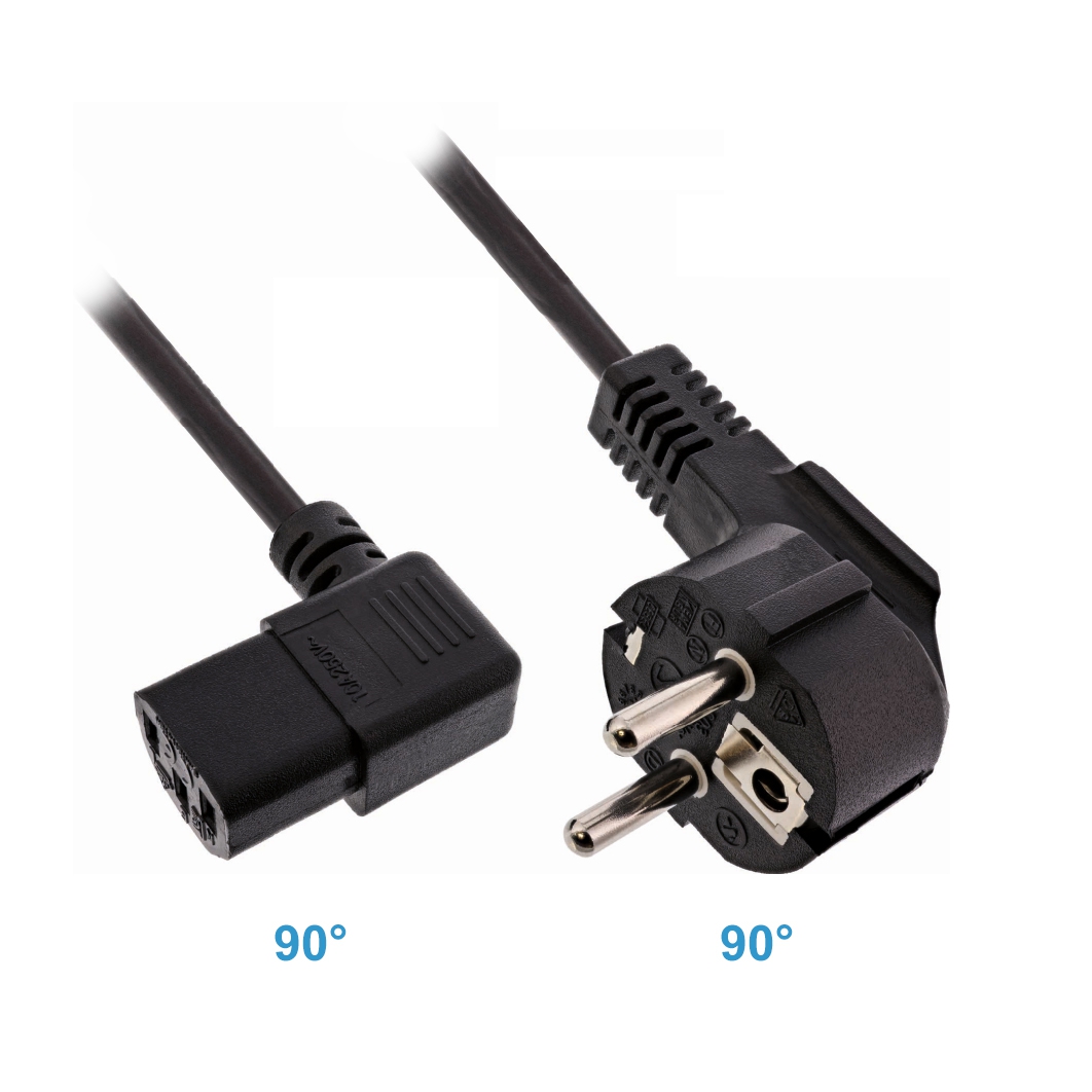 Câble d'alimentation secteur externe pour PC, 5m, p. ex. pour France / Allemagne, prise CEE 7/7 E+F mâle (coude, 2 pôles + terre) - IEC femelle (coude, type "Informatique"), 3G x 1mm², noir