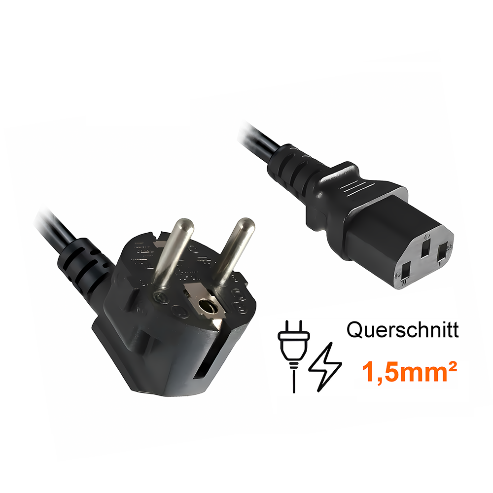 Câble d'alimentation secteur type EUROPE CEE 7/7 E+F 90° coudé vers C13 1.5mm² 5m