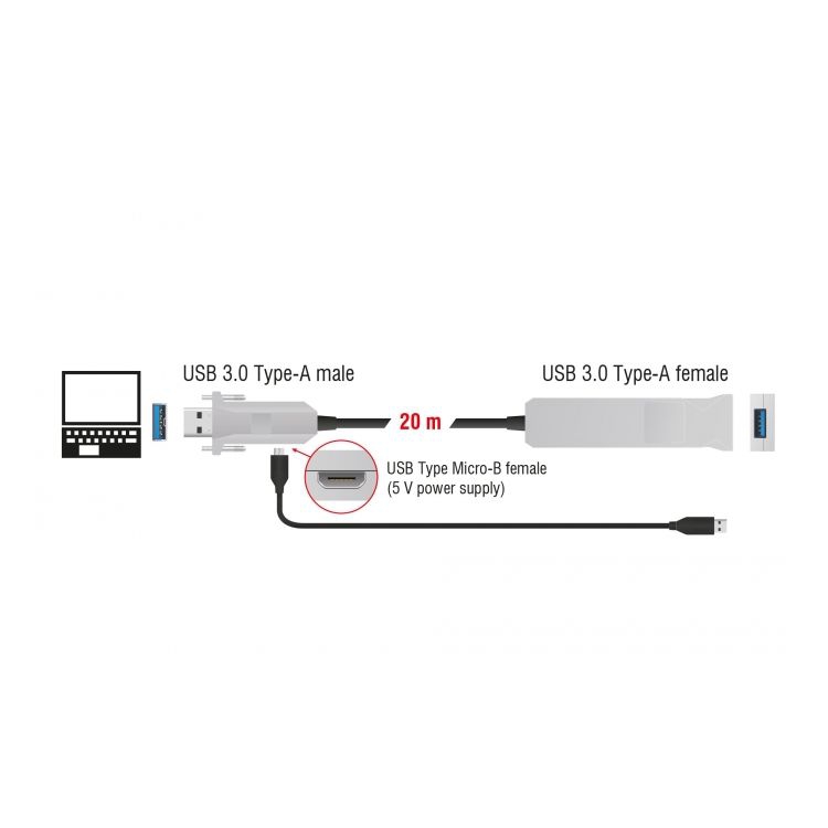 Câble optique actif USB 3.0 A mâle vers femelle 20 m