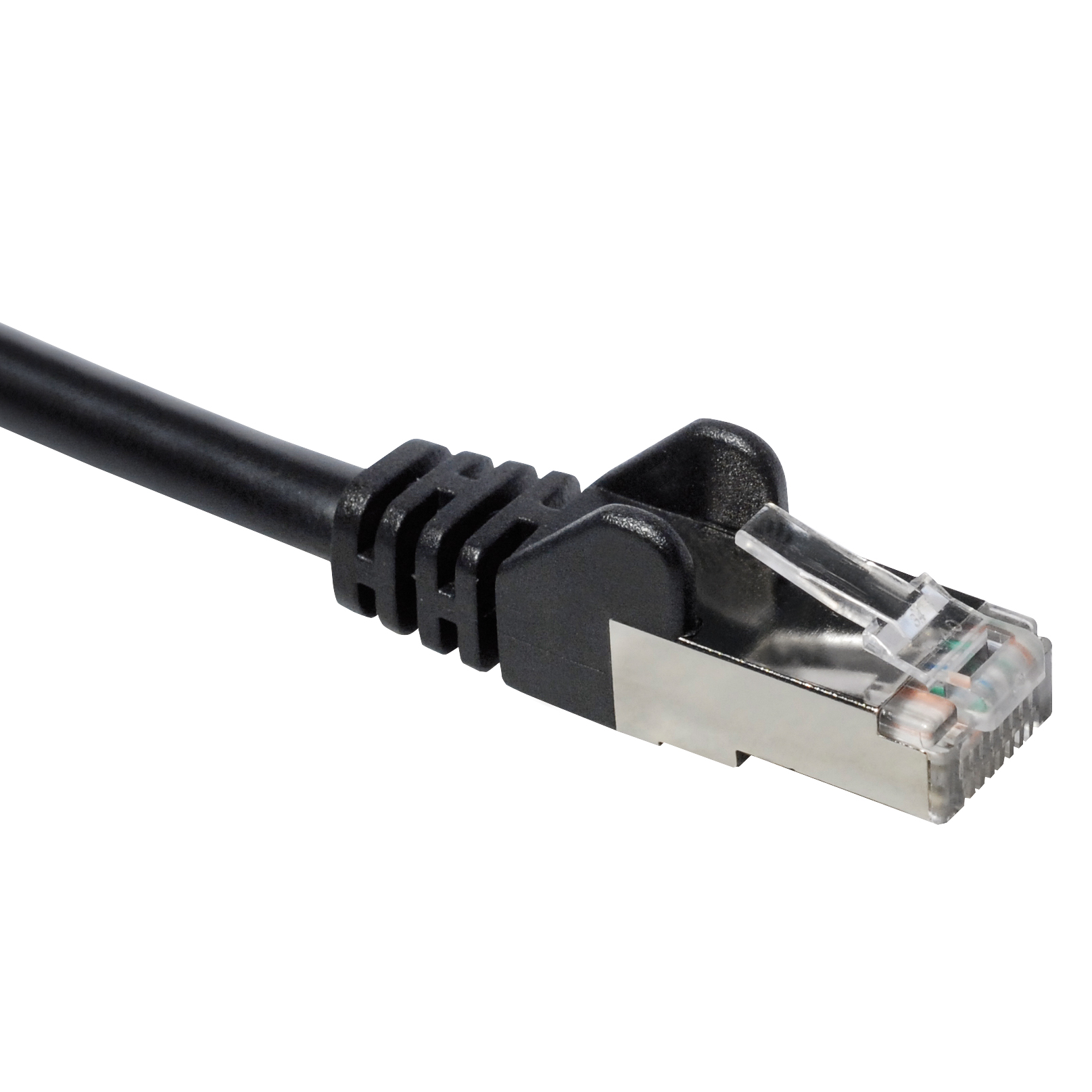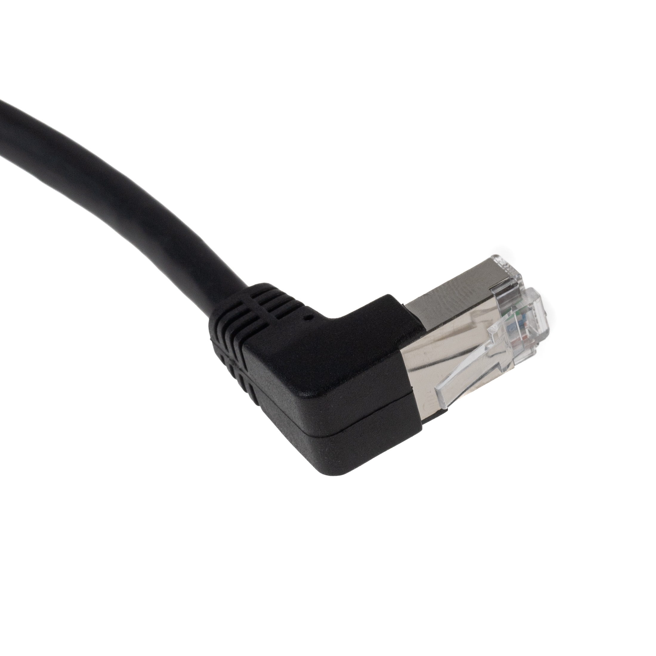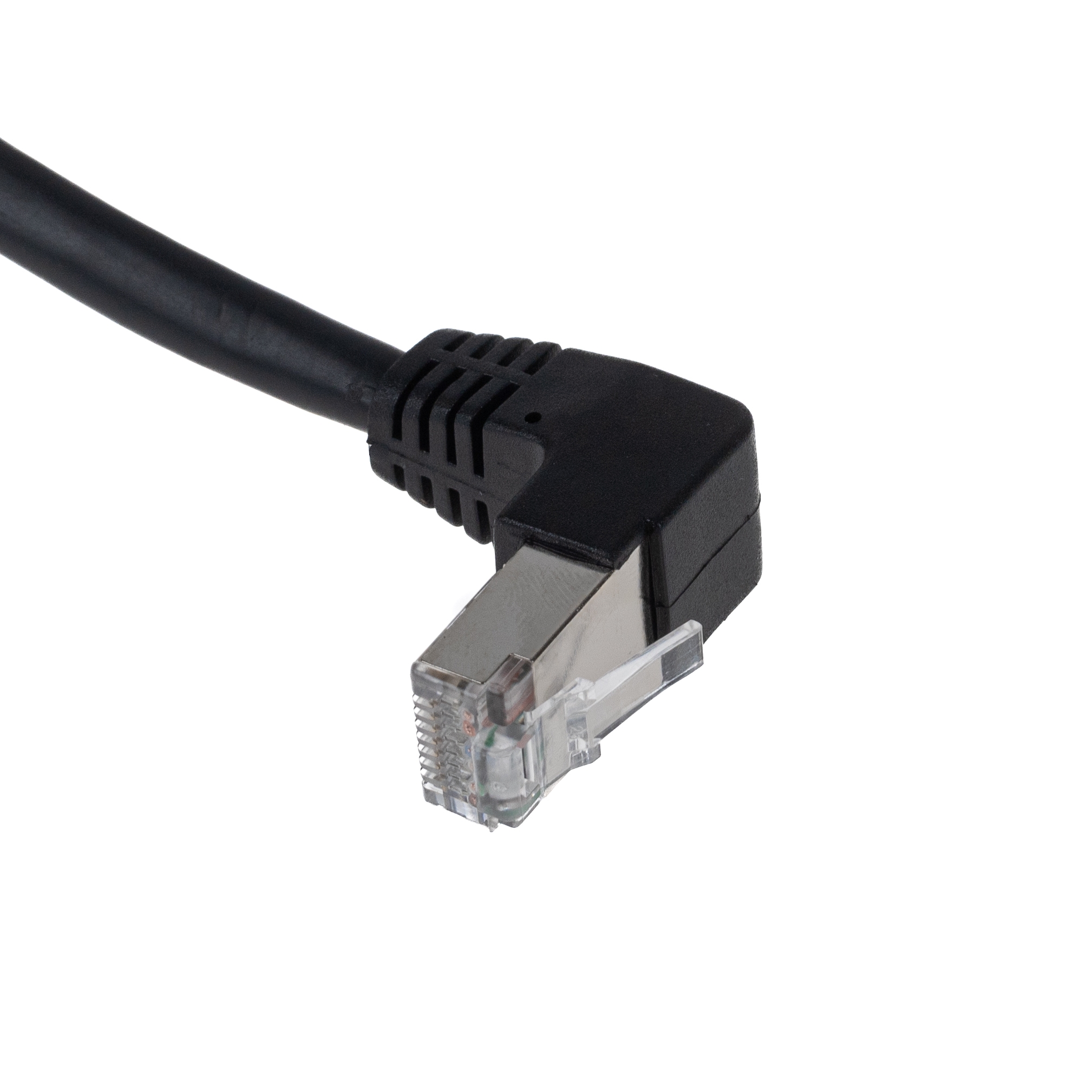 Câble réseau Cat.6A, 1x prise RJ45 coudée à 90° vers le bas, 1x prise RJ45 droite, AWG26 (CU), S/FTP (PIMF), noir, 1m