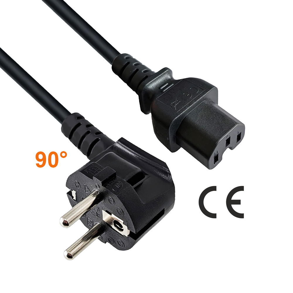 Câble secteur CEE 7/7 90° sur fiche pour appareil chaud C15, 1mm², VDE, noir, longueur env. 0.7m