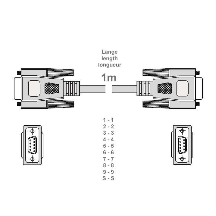 - affectation des broches 1-1, 2-2, 3-3, 4-4, 5-5, 6-6, 7-7, 8-8, 9-9, non croisé