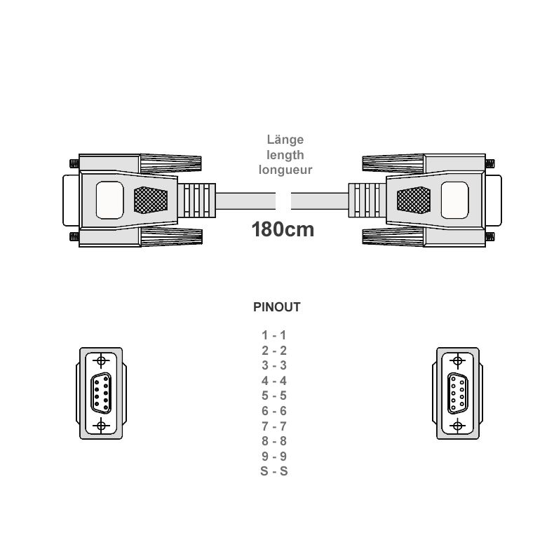 - affectation des broches 1-1, 2-2, 3-3, 4-4, 5-5, 6-6, 7-7, 8-8, 9-9, non croisé