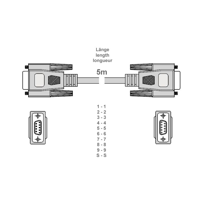 - affectation des broches 1-1, 2-2, 3-3, 4-4, 5-5, 6-6, 7-7, 8-8, 9-9, non croisé
