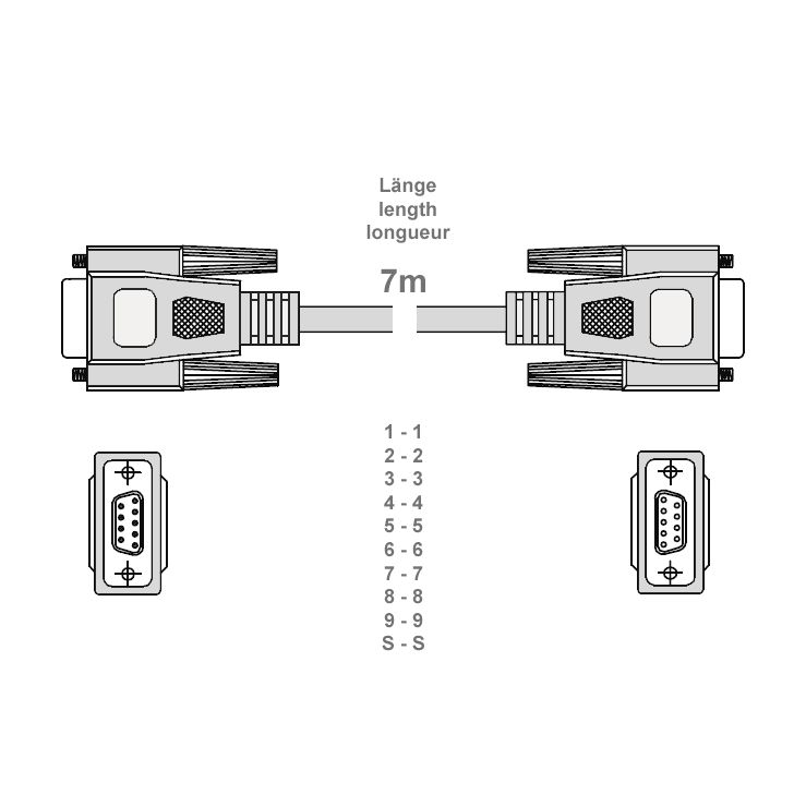 - affectation des broches 1-1, 2-2, 3-3, 4-4, 5-5, 6-6, 7-7, 8-8, 9-9, non croisé