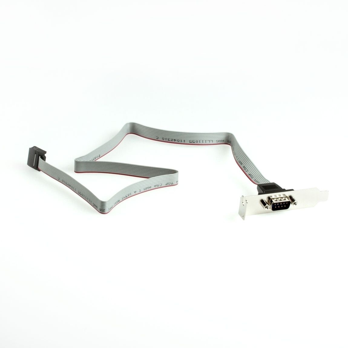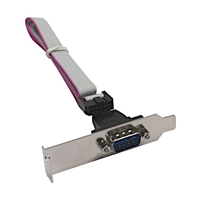 Câble slot LOW PROFILE DB9 mâle vers HE-10 femelle pour RS-232, 60cm, slot de raccordement à des cartes mères ou des cartes add-on vers équerre de sortie, connectique: 1-1, 2-2, 3-3, 4-4, 5-5, 6-6, 7-7, 8-8, 9-9, Pin 10 de HE-10 pas connecter
