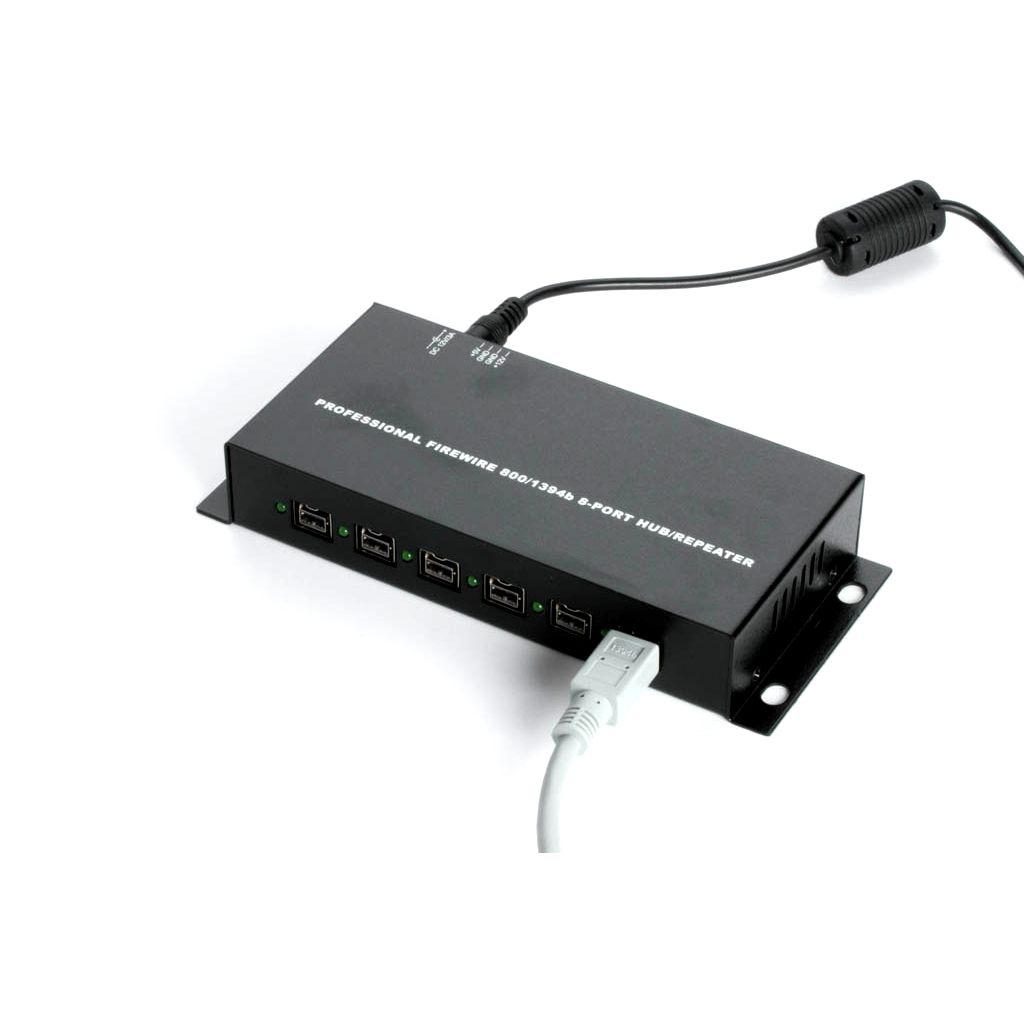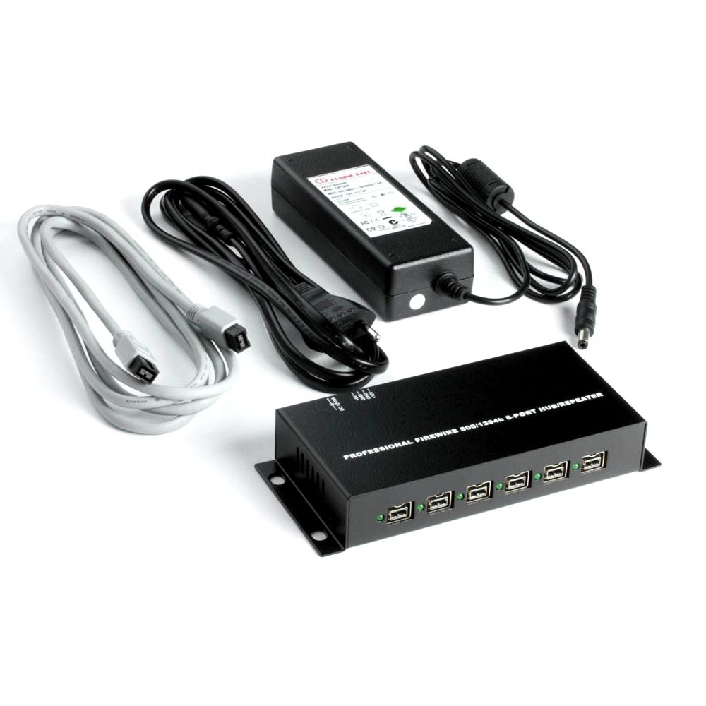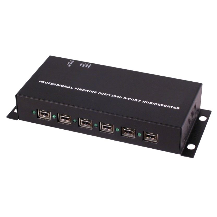 Concentrateur FireWire 800 (HUB), 8 ports (1 entrée / 7 sorties), compatible IEEE1394b, boîtier métallique, avec alimentation électrique externe 12V et câble FireWire 9/9, pour PC et Apple Mac, couleur: noir, chips de Texas Instruments