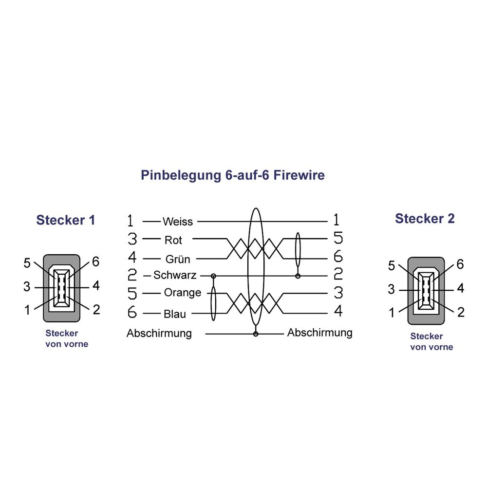 Connecteur FireWire 400 6 broches, version pour souder, mâle, pour IEEE1394a / FireWire 400 (sans capuchon)