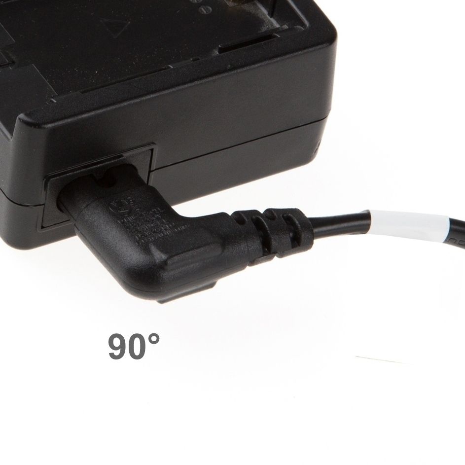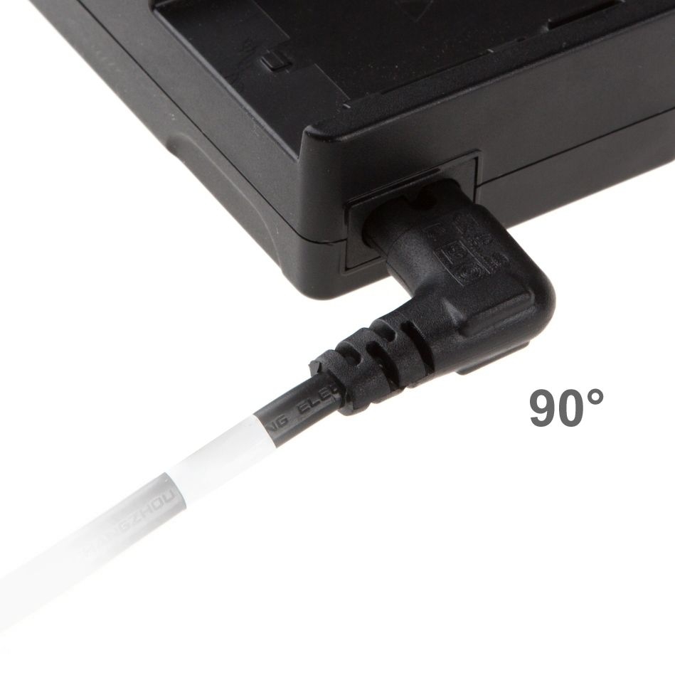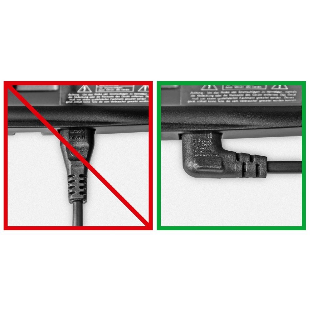 Câble d'alimentation secteur bi polaire (fig. 8), 90° COUDÉE sur les deux côtés, 220V, 1.5m, noir, p.ex. pour portable/radio etc.