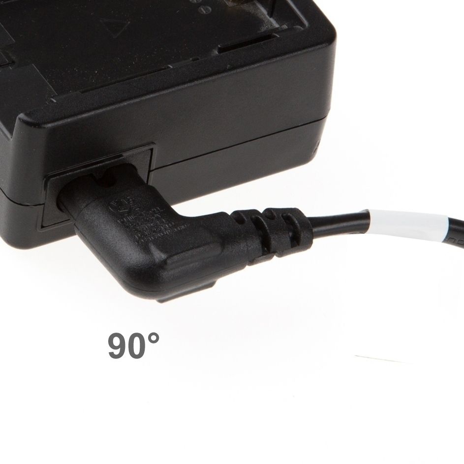 Câble d'alimentation secteur bi polaire (fig. 8), 90° COUDÉE sur les deux côtés, 220V, 5m, noir, p.ex. pour portable/radio etc.