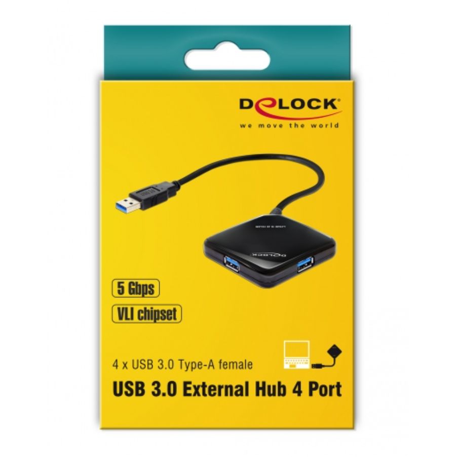 HUB / concentrateur USB 3.0 (Super Speed) avec 4 ports de DELOCK, noir