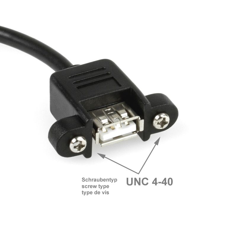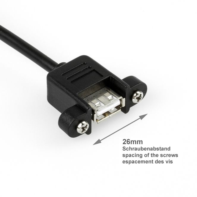 Câble USB à visser / rallonge de montage, 1m, prise USB A femelle (2 vis) vers prise USB A mâle, Hi-Speed USB 2.0 (haute qualité 28AWG1P / 24AWG2C), noir