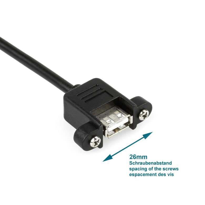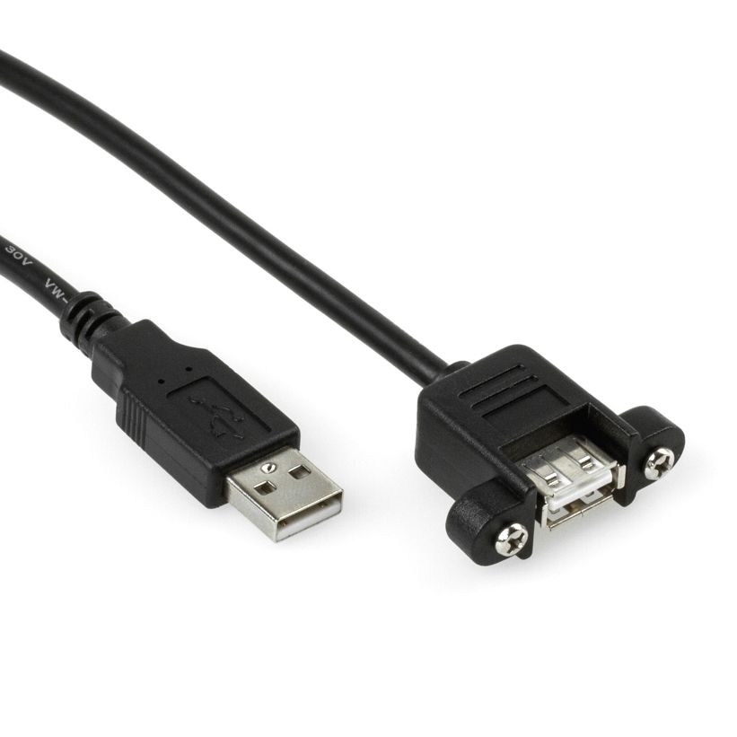 Câble USB à visser / rallonge de montage, 3m, prise USB A femelle (2 vis) vers prise USB A mâle, Hi-Speed USB 2.0 (haute qualité 28AWG1P / 24AWG2C), noir