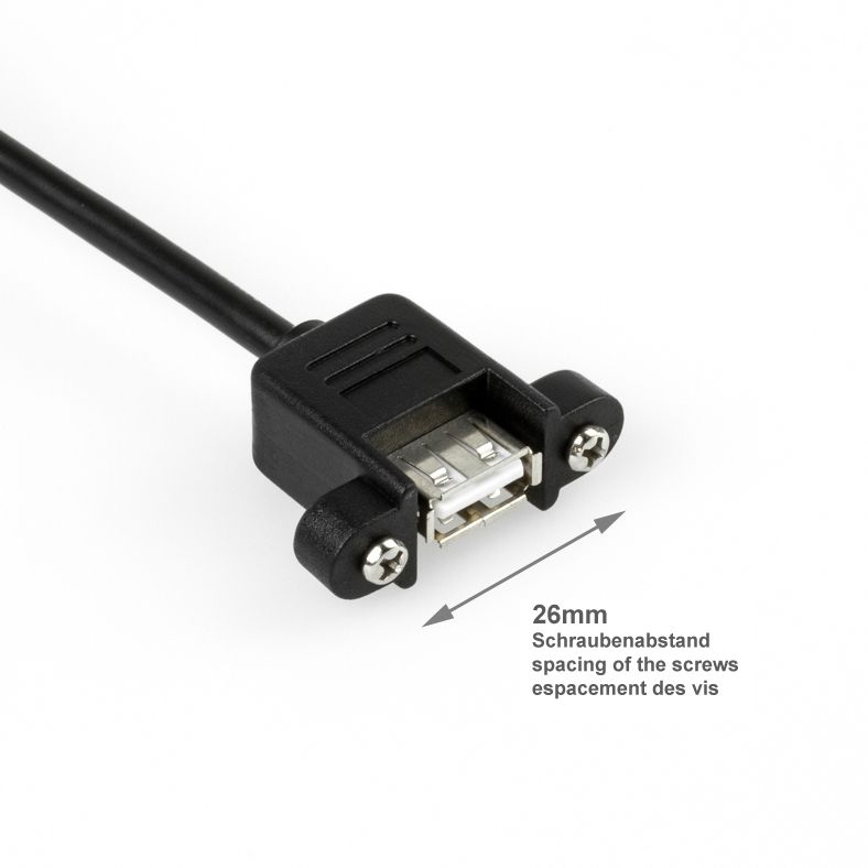 Câble USB à visser / rallonge de montage, 5m, prise USB A femelle (2 vis) vers prise USB A mâle, Hi-Speed USB 2.0 (haute qualité 28AWG1P / 24AWG2C), noir