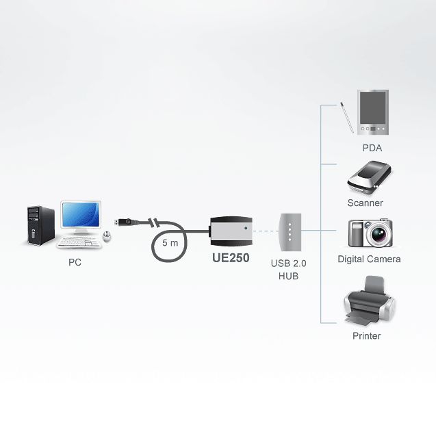 Rallonge USB 2.0 active avec amplificateur ATEN UE-250 5m