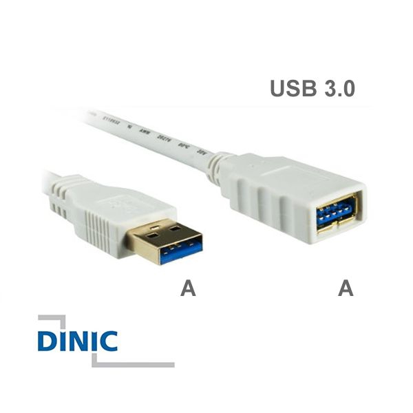 Câble rallonge USB 3.0, 2m, Super-Speed (max. 5Gbps), connectique: fiche USB3 A mâle - fiche USB3 A femelle, cordon de haute qualité, couleur: blanc