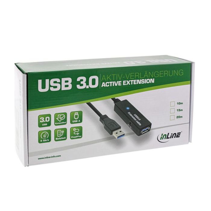 Rallonge USB 3.0 active 20m avec bloc d'alimentation
