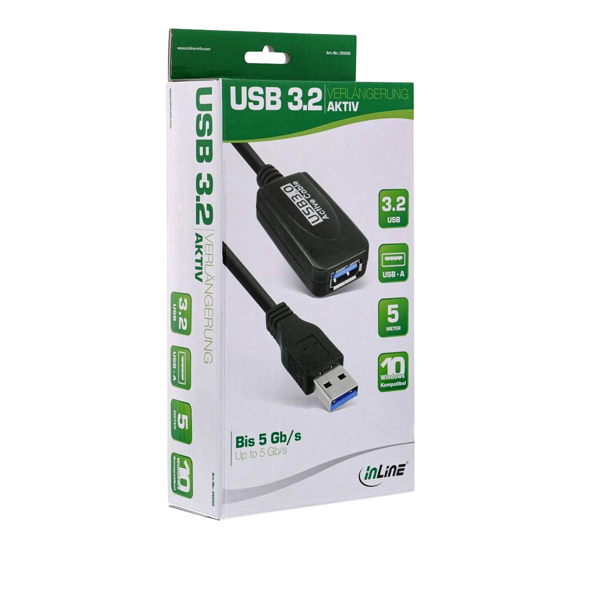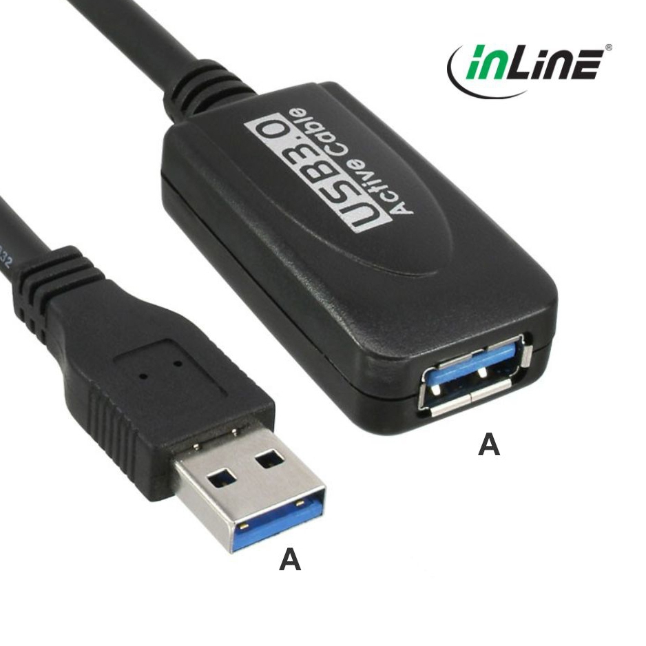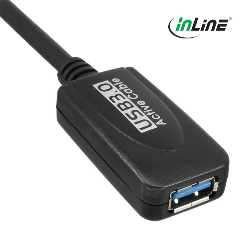 Ce câble USB 3.0 est utilisé pour prolonger activement le port USB 3.0 de 5 mètres. Un amplificateur électronique (booster) est intégré dans le connecteuer (femelle) du câble d'extension. L'alimentation de ce booster de signal se fait via BusPower.