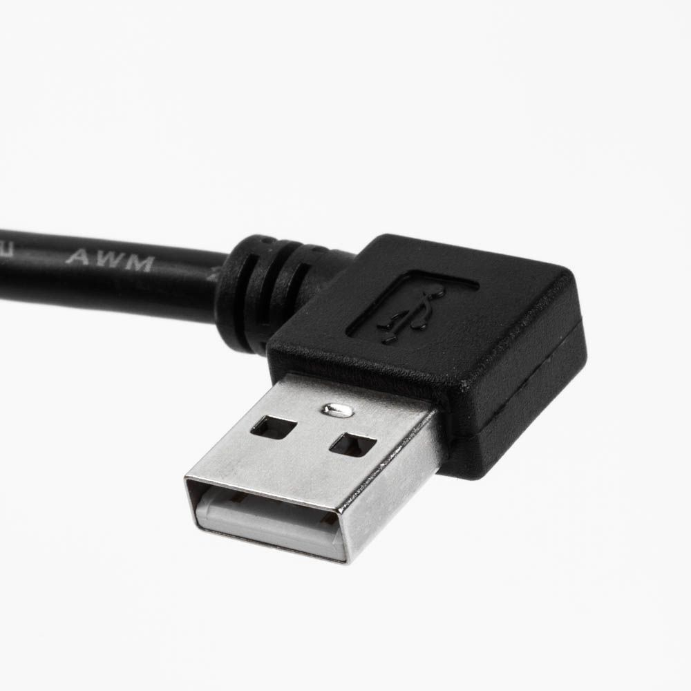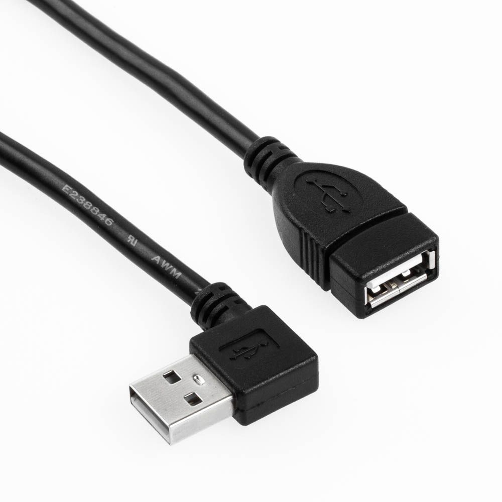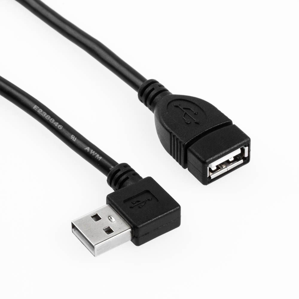 Câble rallonge USB avec connecteur A coudé 90° À DROITE, 1m, Hi-Speed USB 2.0 (haute qualité 28AWG1P/24AWG2C), connectique: prise USB type A mâle (coudée) - prise USB type A femelle (pas coudée), couleur: noir