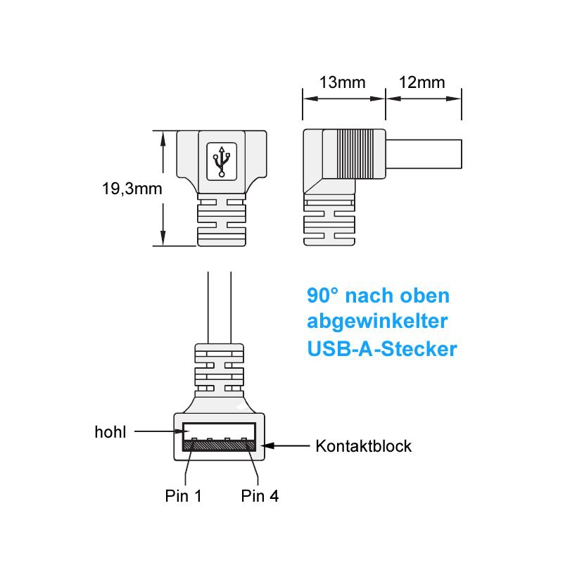 Rallonge USB AA coudé 90 VERS LE HAUT 2m