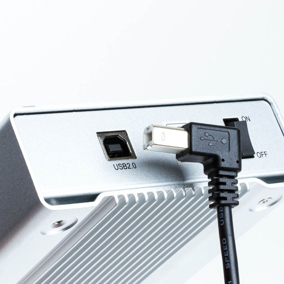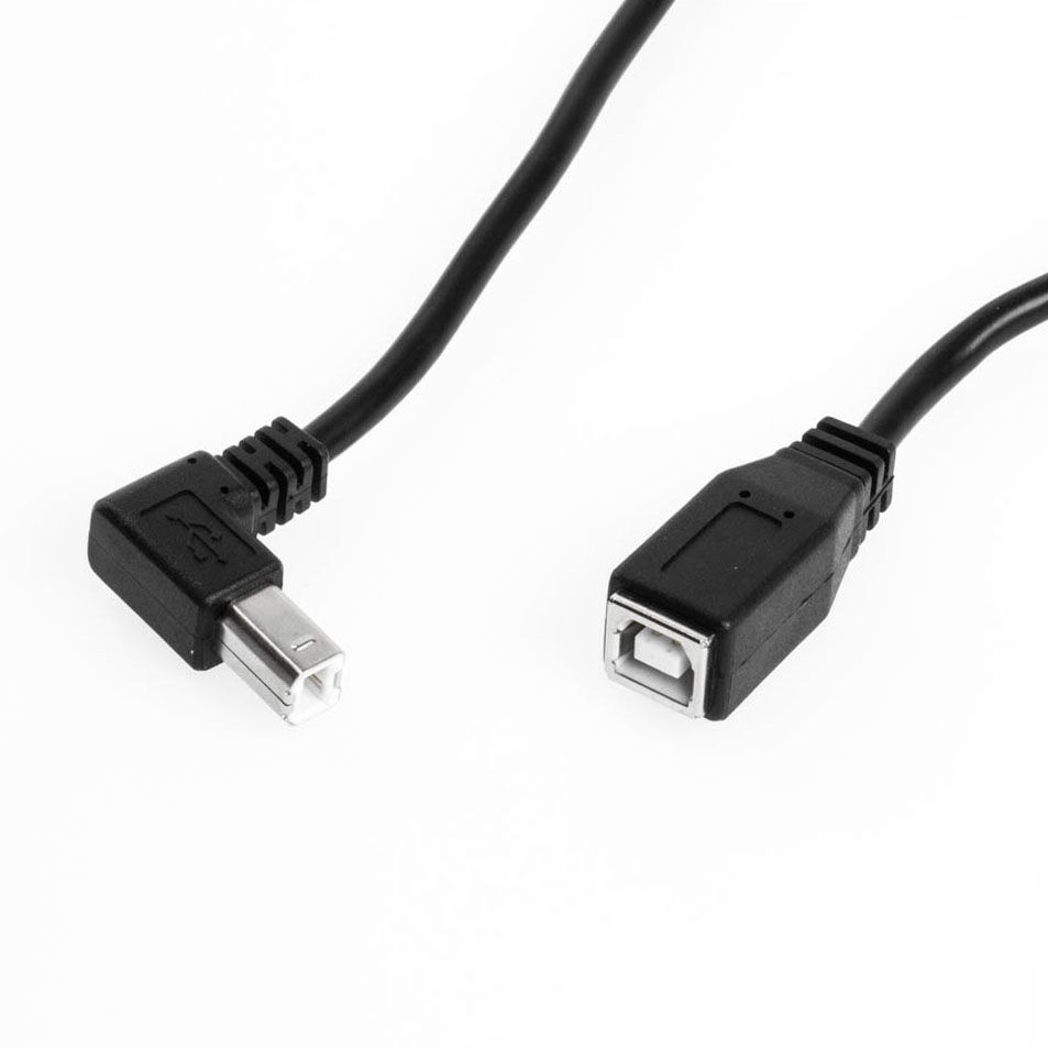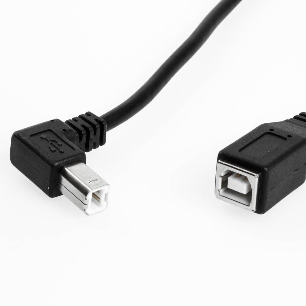 Câble rallonge USB BB coudée, 30cm, USB B mâle coudé VERS LE BAS vers USB B pas coudé, Hi-Speed USB 2.0 (haute qualité 28AWG/1P 24AWG/2C), noir