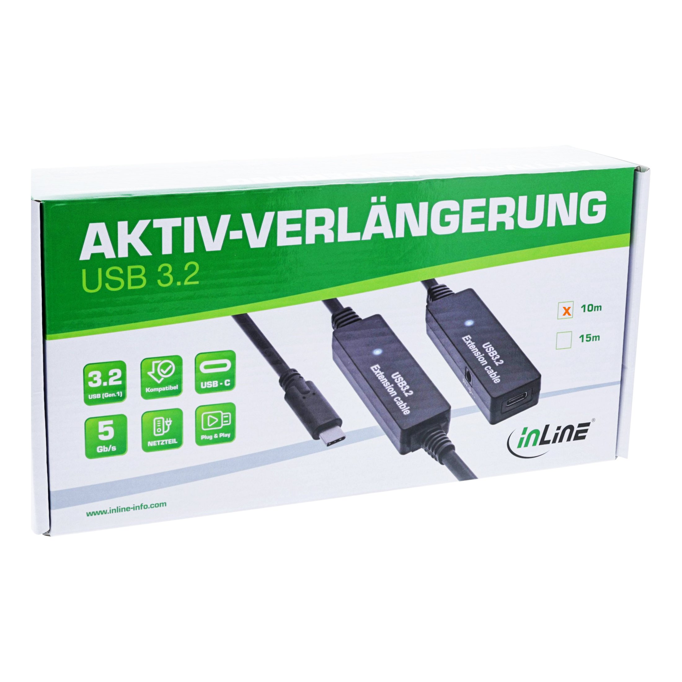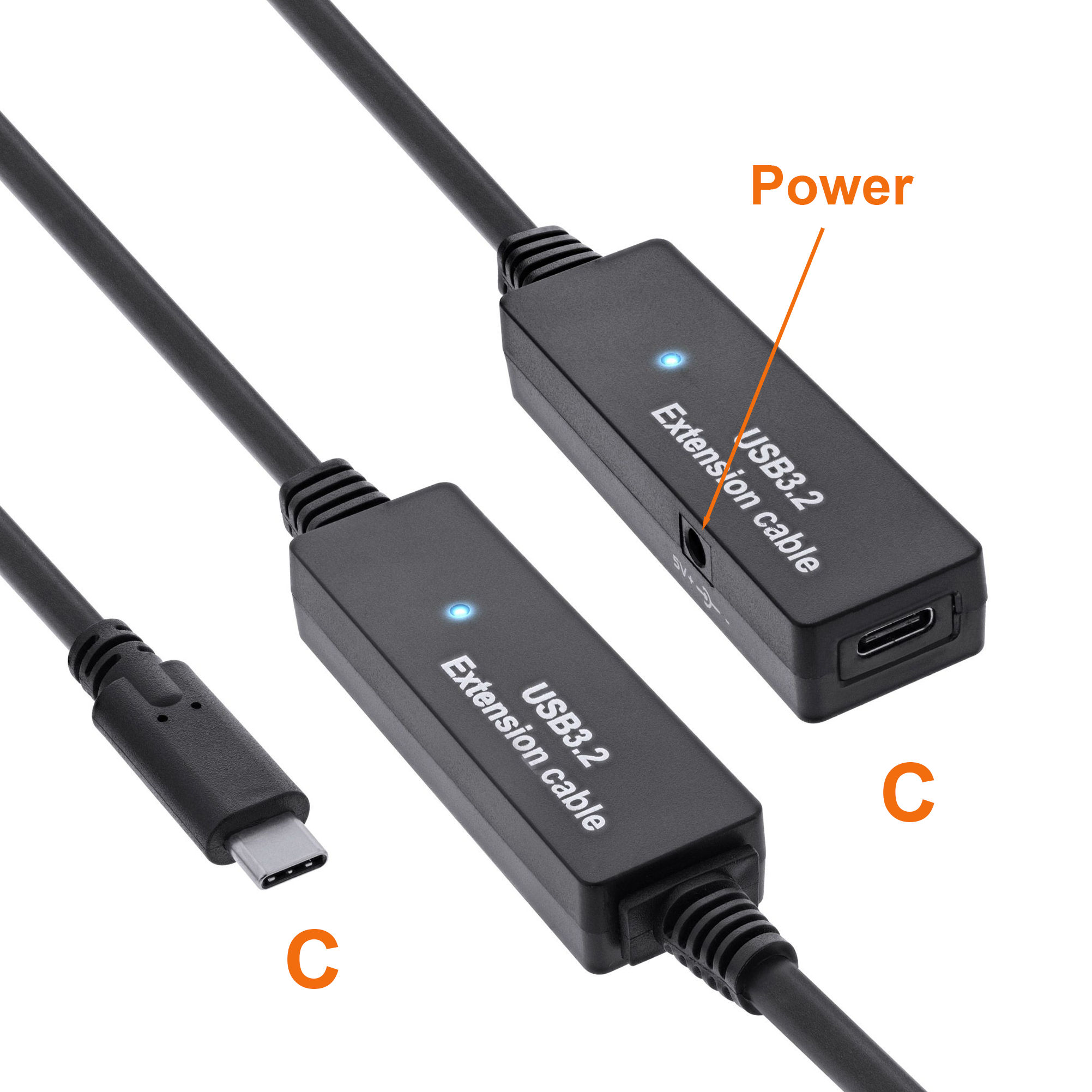 Rallonge USB active C vers C, 5 Gbit/s, 10 m, avec bloc d'alimentation