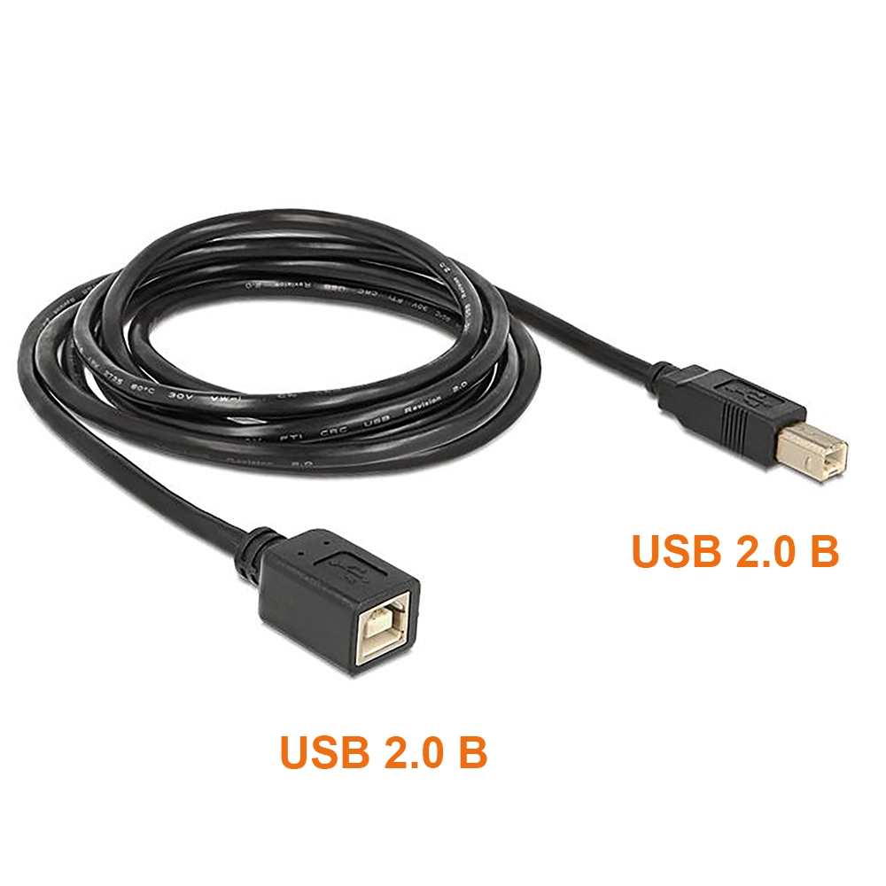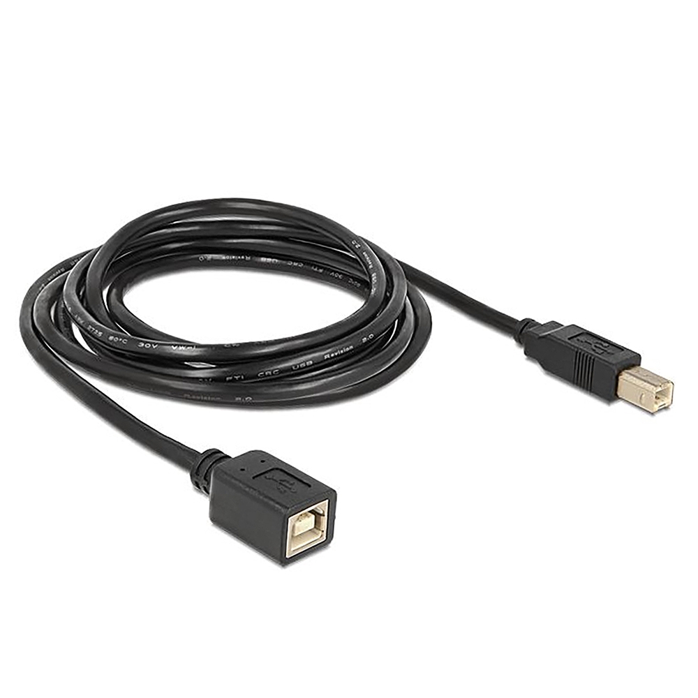 Câble rallonge USB version spéciale BB, 2m, USB à 4 broches type B mâle/femelle, Hi-Speed USB 2.0 (haute qualité 28AWG1P/24AWG2C), couleur: noir