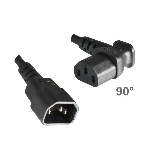 Rallonge d'alimentation secteur C13 coudée vers C14, longueur 1.8m, utilisable internationale, 3 x 0.75mm², VDE, NF, DEMKO, NEMKO, FINKO, KEMA, CEBEC, OVE, IMQ, SEV, SAA