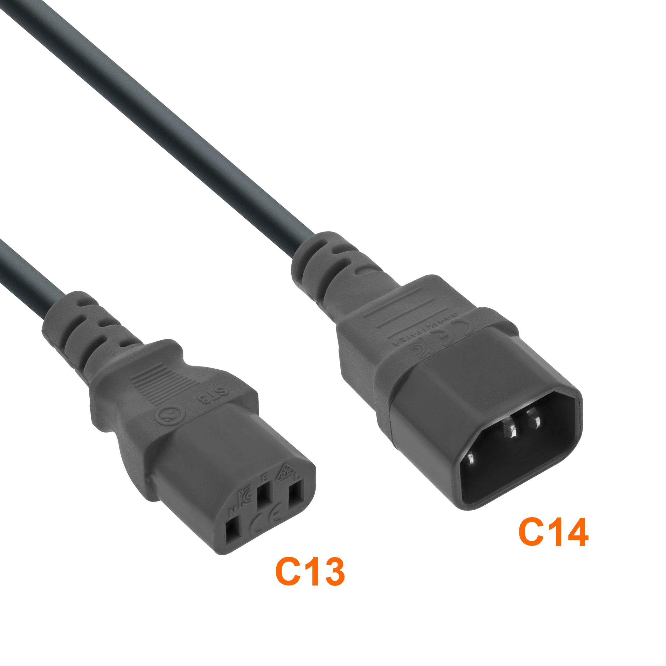 Rallonge d'alimentation secteur C13 vers C14, longueur 1m, utilisable internationale, 3 x 0.75mm², VDE, NF, DEMKO, NEMKO, FINKO, KEMA, CEBEC, OVE, IMQ, SEV, SAA