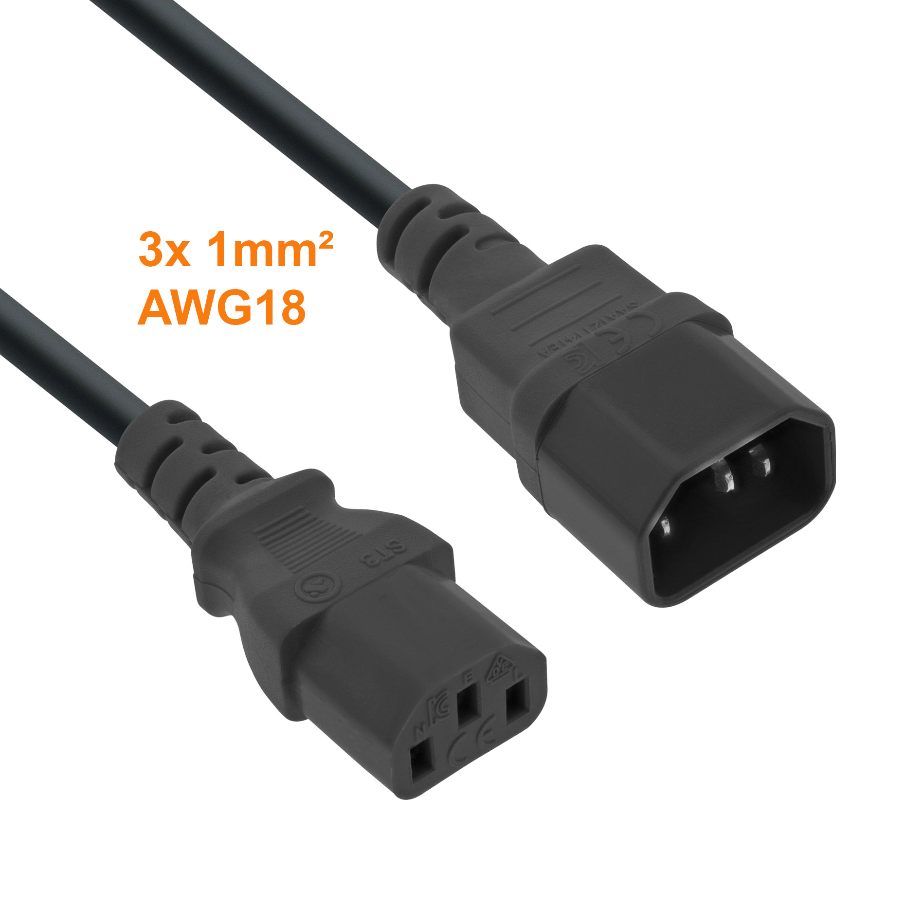 Rallonge d'alimentation secteur C13 vers C14, longueur 3m, utilisable internationale, 3 x 1mm², VDE