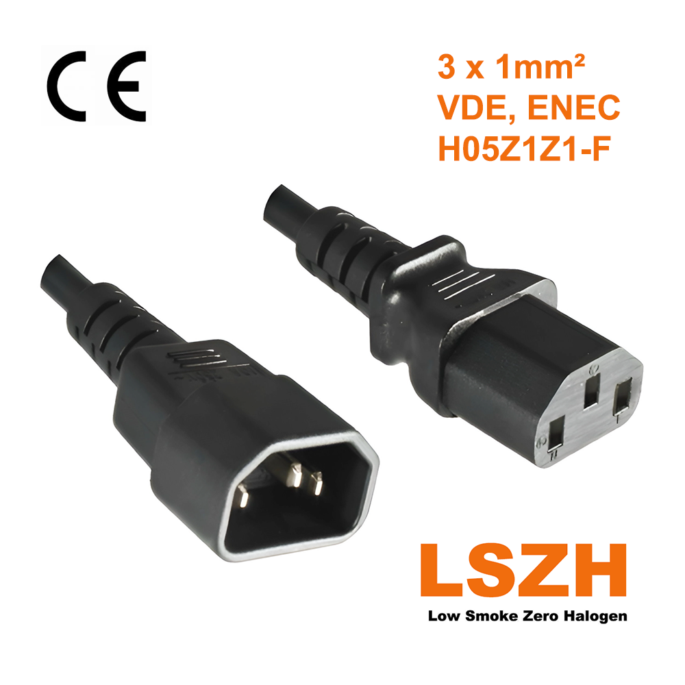 Rallonge d'alimentation secteur C13 vers C14, longueur 1.8m, utilisable internationale, 3 x 1mm², LSZH
