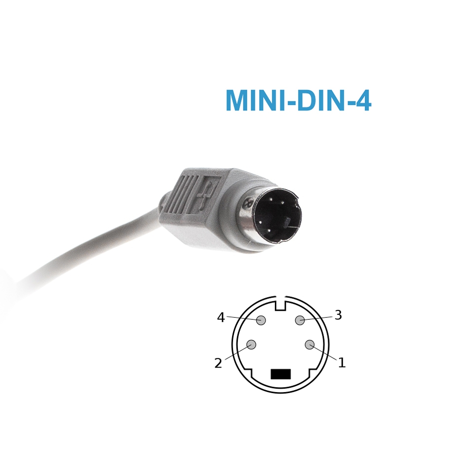 - câble de raccordement avec mini-DIN-4 (4 broches, mâle) selon l'ancien standard Apple