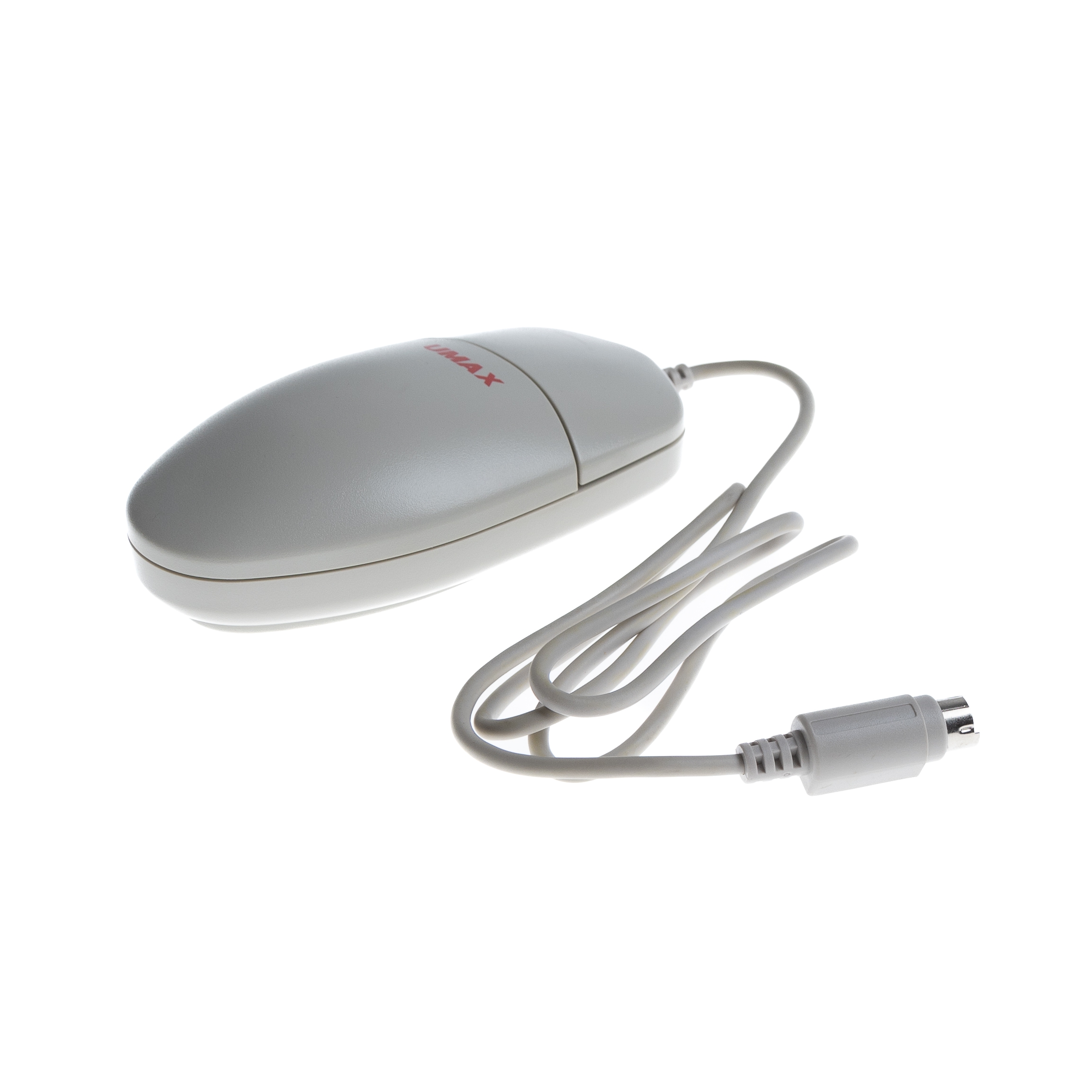 Souris pour très anciens ordinateurs de APPLE, pour ADB (Apple Desktop Bus), connecteur rond Mini-DIN à 4 broches, 100% compatible, mono-bouton, avec micro-switch, 275dpi, fabricant : UMAX