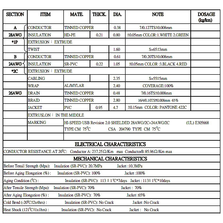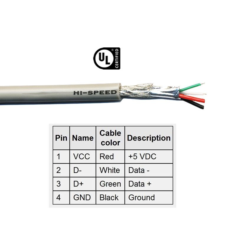 Touret de câble USB 2.0 100m AWG28 AWG24 UL gris