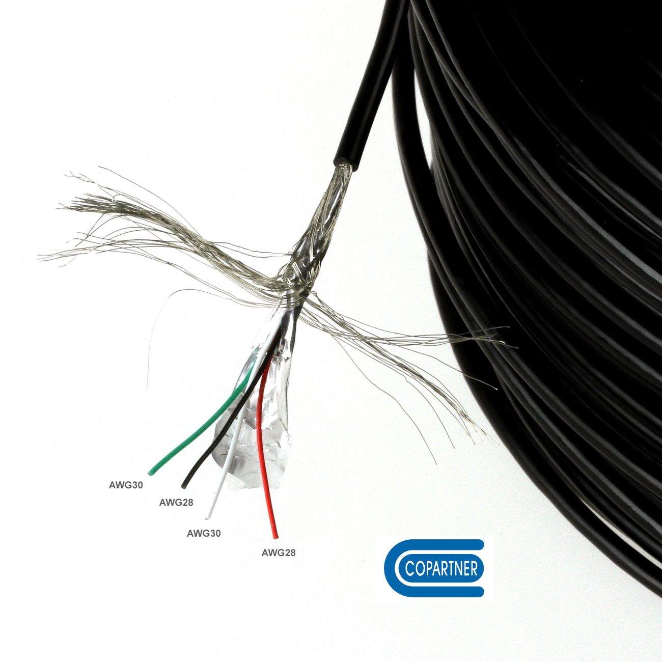 Touret de câble USB 2.0, très flexible, diamètre extérieur 3mm, noir