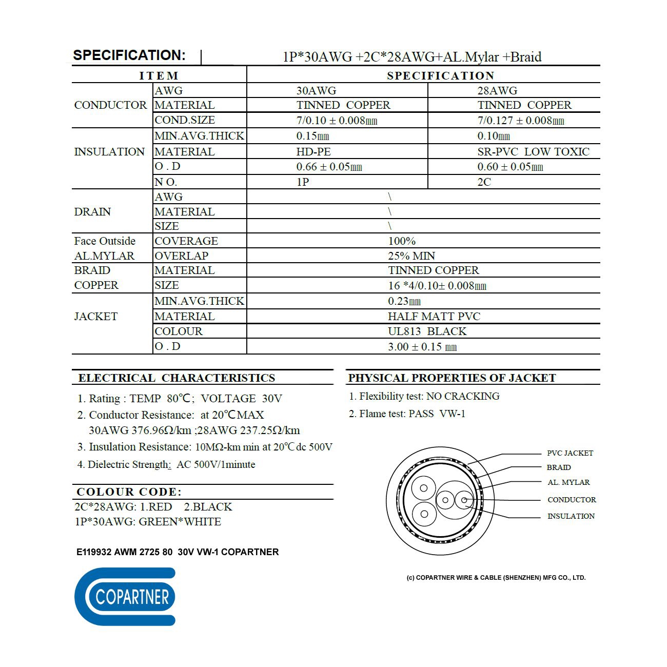 - Câble de Copartner avec UL 2725, VW-1, 30V, 80°C