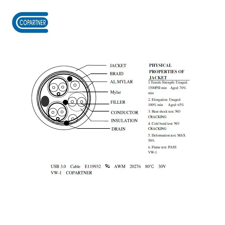 Touret de câble USB 3.0, 100m, Qualité Premium, UL, Copartner, bleu