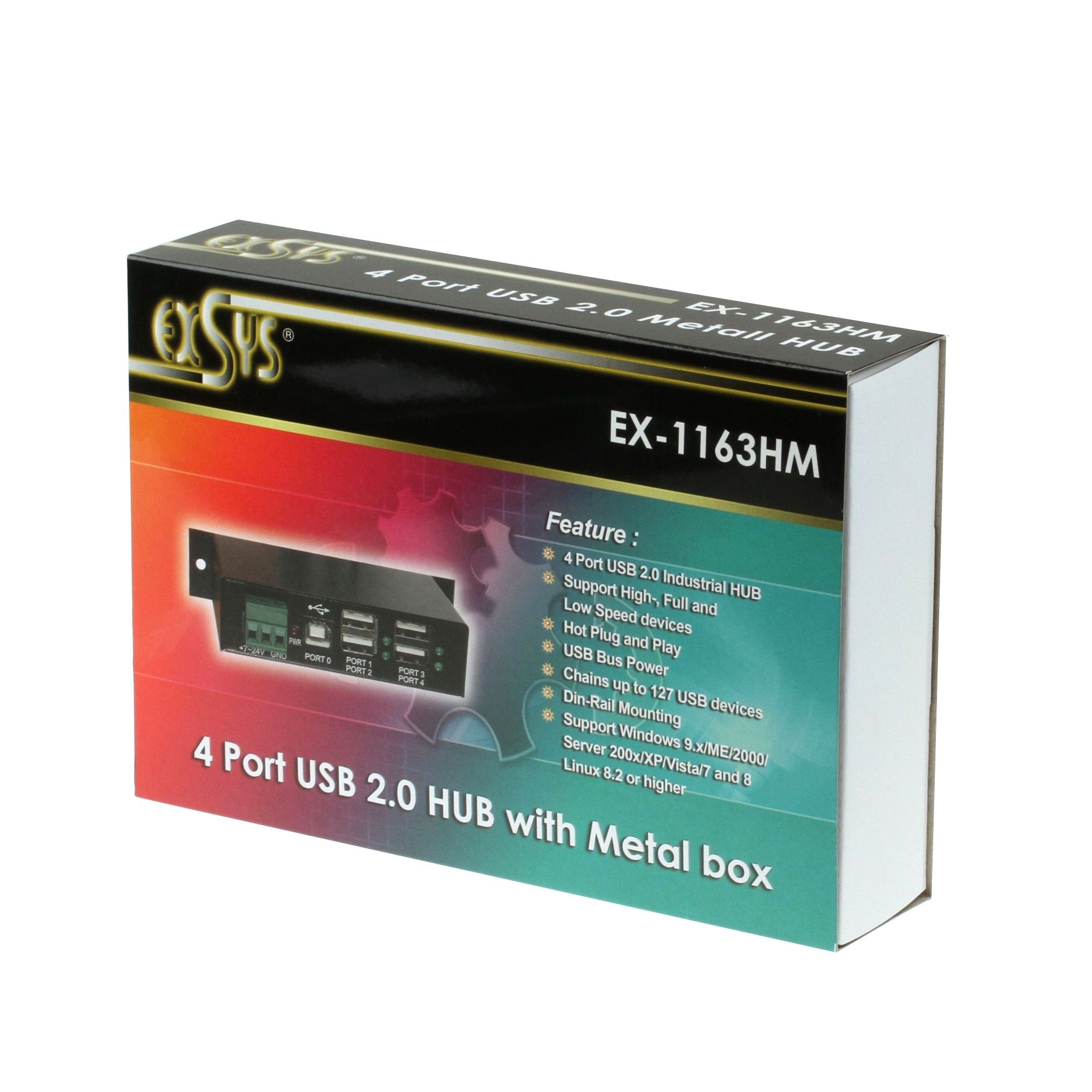 USB HUB / concentrateur USB 2.0 (Hi-Speed), version industrielle DIN-RAIL, 4 ports (1 entrée / 4 sorties), sans alimentation externe, EXSYS EX-1163HM