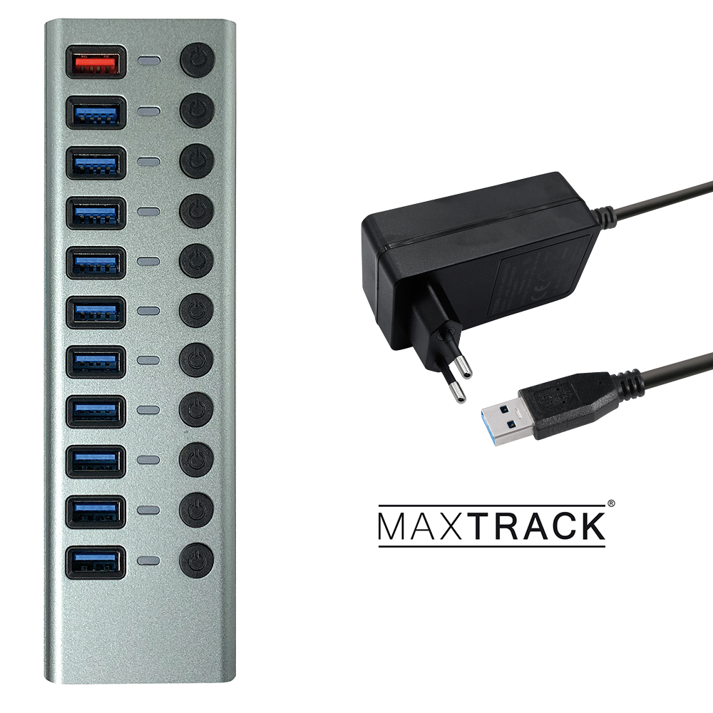 USB 3.0 HUB concentrateur avec 11 ports, boîtier métallique, 10x USB ports + 1x port de chargement, chaque port est individuellement commutable, avec câble USB 3.0 1m et bloc d'alimentation 4A