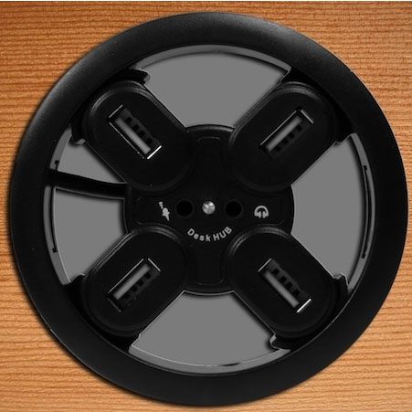 USB HUB / concentrateur, version de montage (trou avec diamètre 80mm), 4 ports USB + 2 ports stéréo 3.5mm femelle, USB 2.0 Hi-Speed, HUB USB alimenté (sans alimentation électrique)
