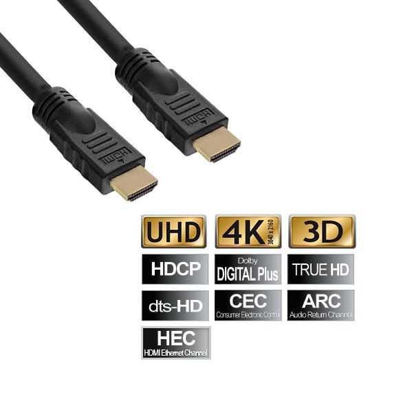 Câble HDMI High Speed avec Ethernet, longueur 15m, plaqués or
