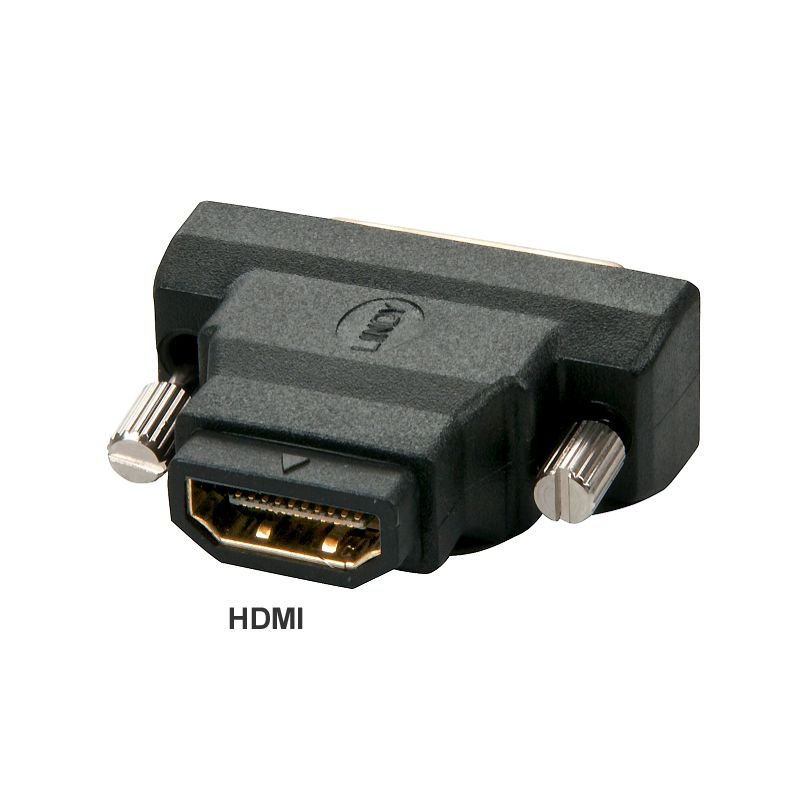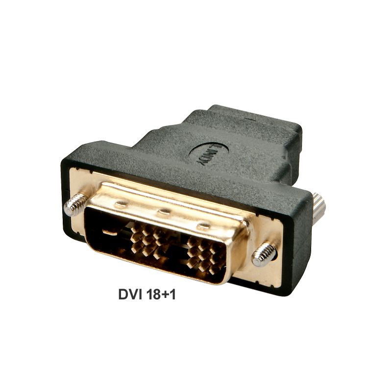 Adaptateur DVI 18+1 mâle vers HDMI femelle (19 broches), DVI avec 2 vis, forme particulièrement petite, fabricant : LINDY Allemagne