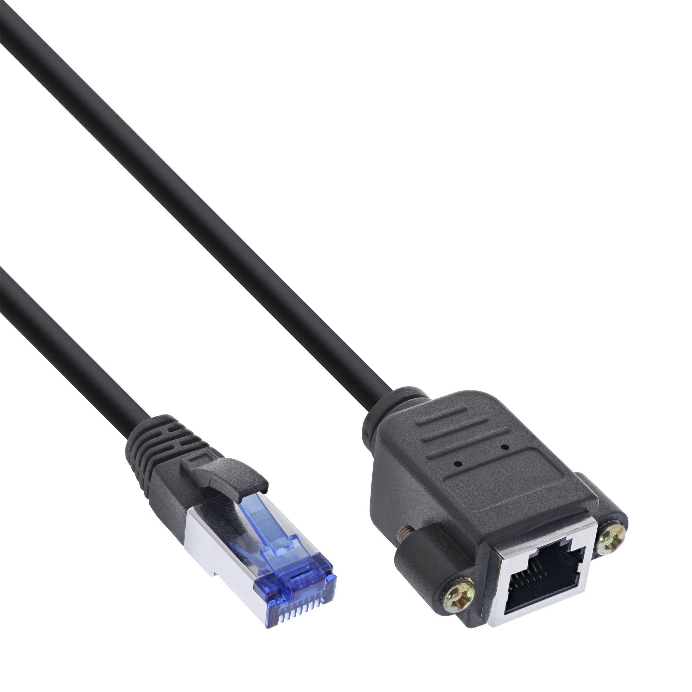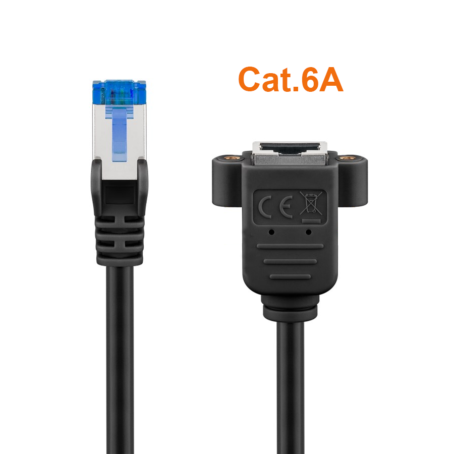 Câble Cat. 6A Montage de Panneau, RJ45 mâle-femelle avec 2 vis, 2m