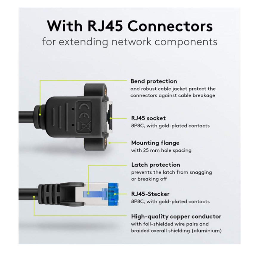 - spécification : Cat. 6A, convient également pour Cat.6, Cat.5e ou d'autres connexions RJ45