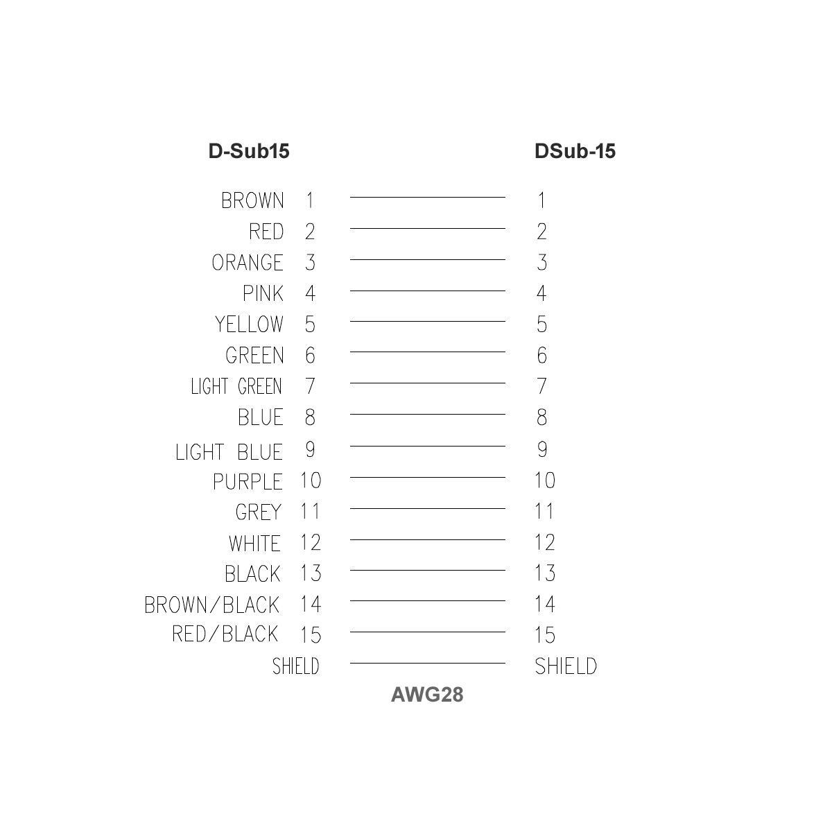 - connexion des broches: 1-1, 2-2, 3-3 .... 15-15